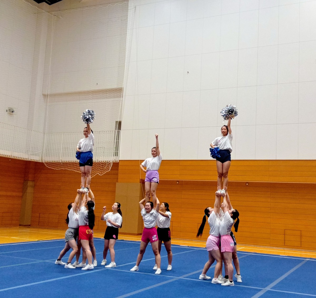 私たちチアリーダー部CYCLONESは1月11日(日)に帝京大学の体育館にて、帝京大学チアリーディング部BUFFALOSの方たちと合同練習をさせていただきました。